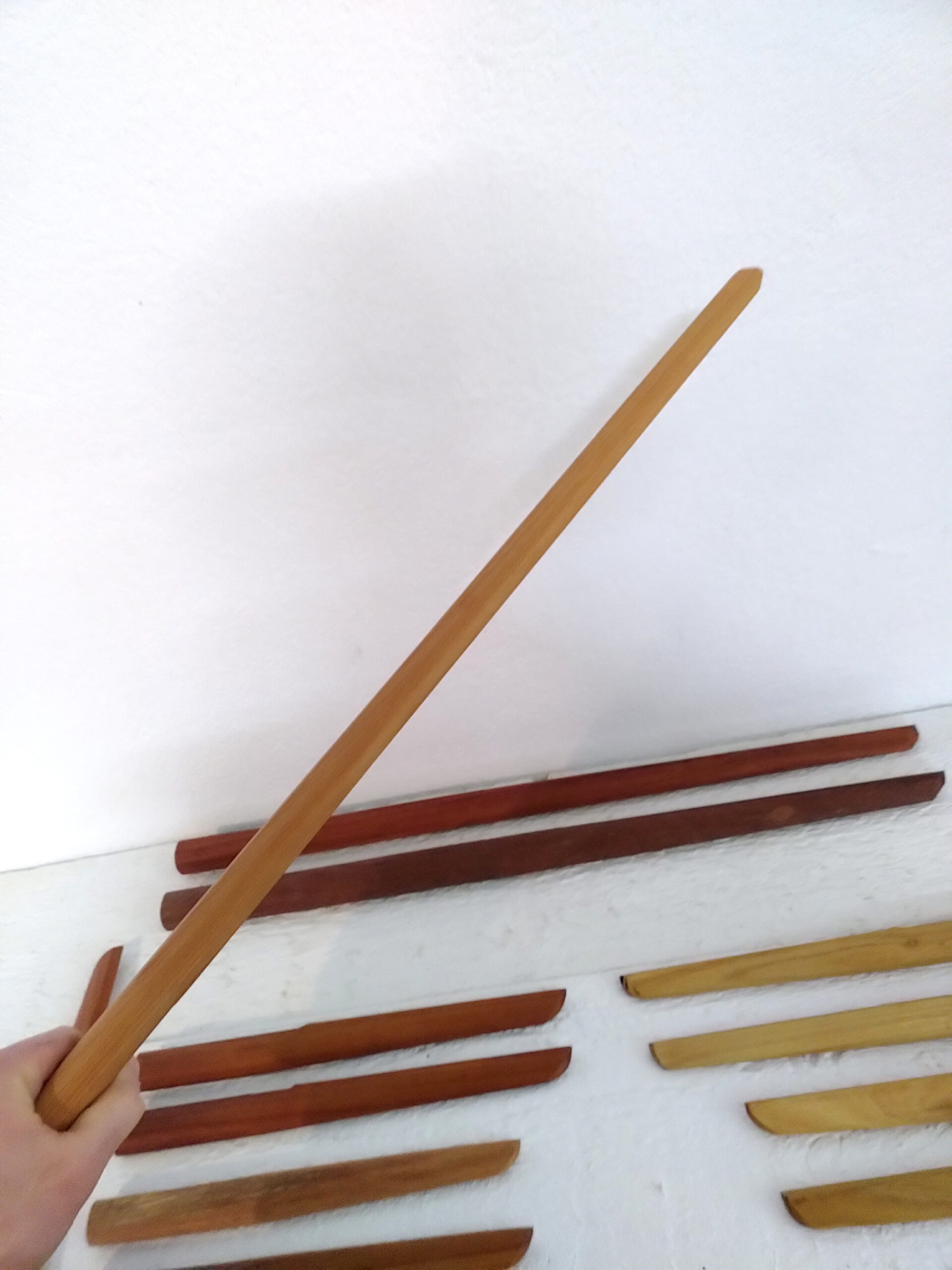 Lors de la commande, il est possible de choisir l’essence du bois, la longueur, l’épaisseur, la courbure, la section, la forme du kissaki, le traitement de surface (vernis, huile, cire, ébonisation…), la gravure de ses initiales, etc.